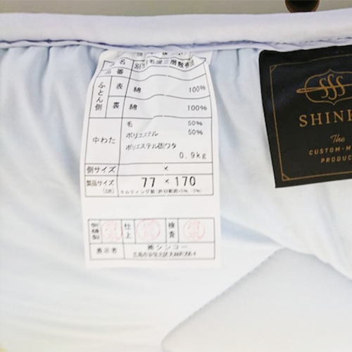 中綿:フランス羊毛50%, 防ダニポリエステル50%