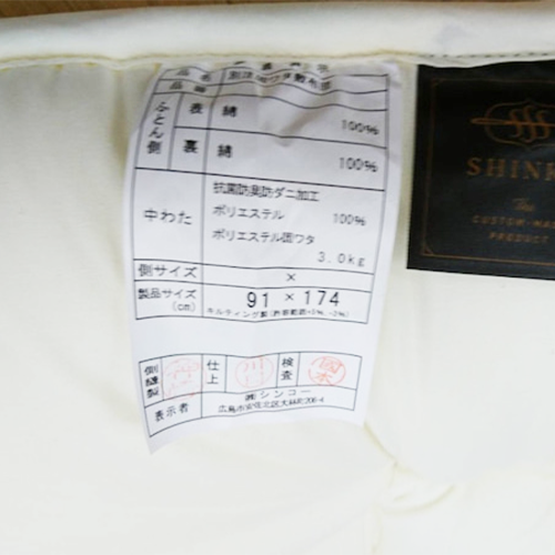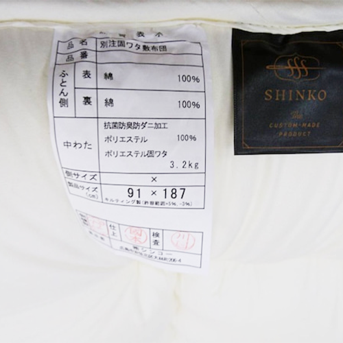 中綿:防ダニ加工ポリエステル100%