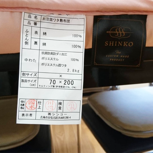 中綿:防ダニ加工ポリエステル100%