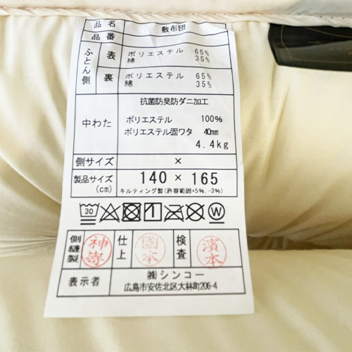 シンコー寝具製作所(株式会社シンコー)は広島で日本製の寝具を販売しております。自社工場を持っており、敷き布団をはじめオーダーメイドによる寝具作りを行っております。